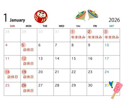 あわせて、下記日程を店休日および年末年始休業とさせていただきます。