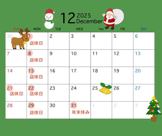 ・2025年 12月1日、8日、15日、21日、22日、29日