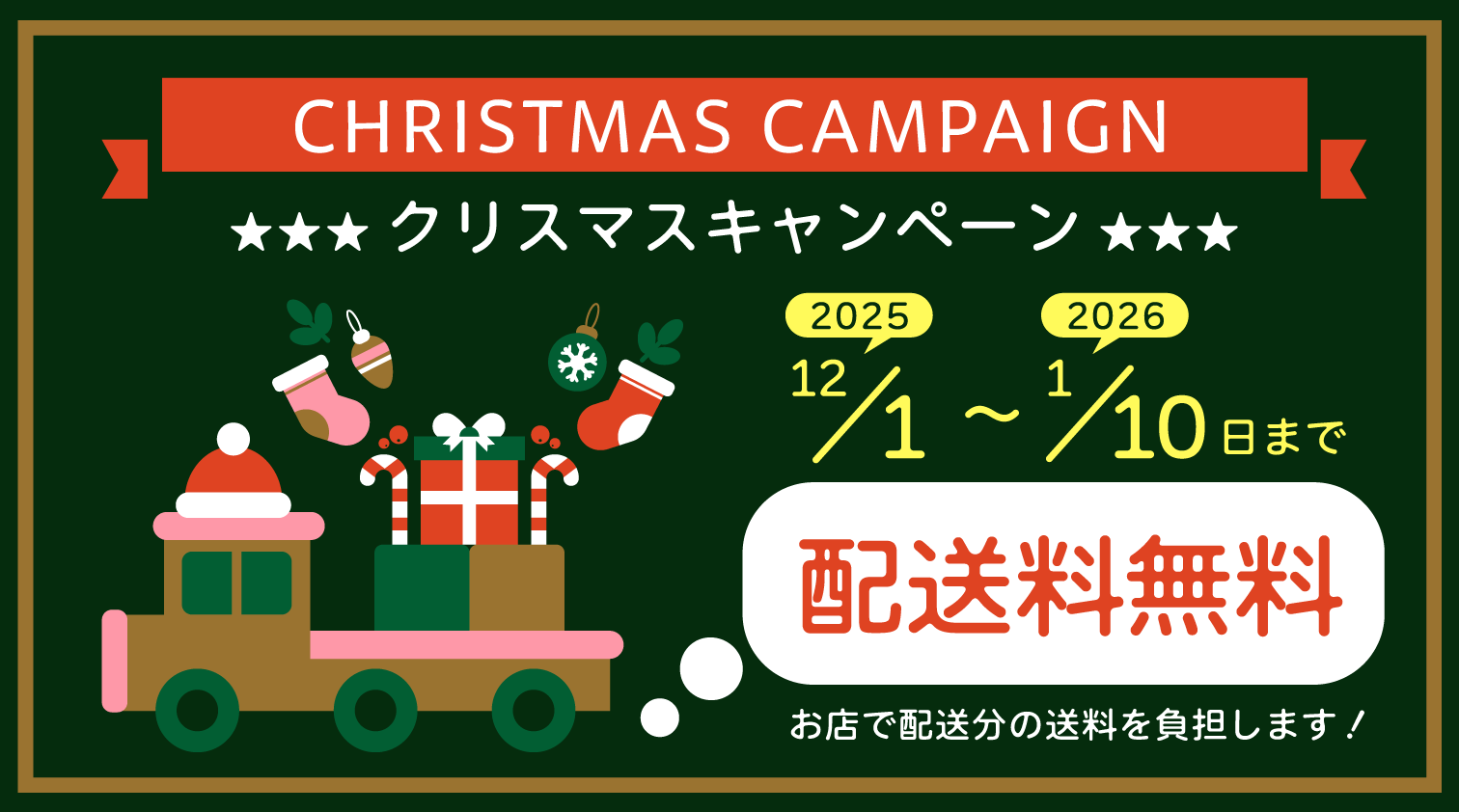 **配送料を当店が全額負担する「発送料無料キャンペーン」** を実施いたします!