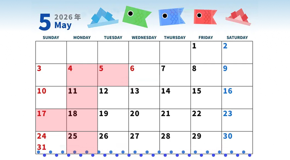 5月のお休みのお知らせです。